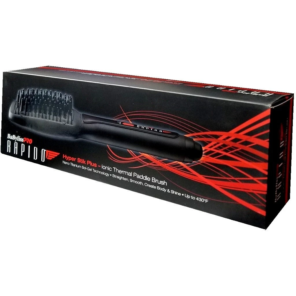 This Thermal Straightening Paddle Brush combines metal, silicone, and plastic bristles paired with BaBylissPRO unrivaled technology will blow your styling routine right out of the water! Designed with advanced Nano Titanium technology, Rapido revolutionizes styling with tools engineered to be faster, lighter and more powerful.