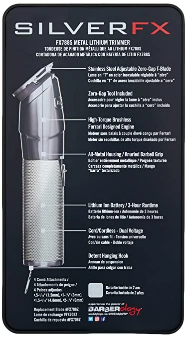 Silver FX is a cord/cordless lithium trimmer. It is a perfect tool for outlining, designs and all other fine work. A perfect tool to add to any barber/stylist collection.