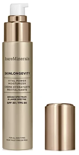 Protect your skin’s radiant, healthy-looking glow — every single day. Inspired by bareMinerals’ best-selling serum, SKINLONGEVITY Vital Power Moisturizer SPF 30 instantly replenishes essential moisture and helps prevent premature signs of aging. It helps improve skin’s resilience to better protect against damaging environmental stressors, while mineral-based SPF 30 provides protection from damaging UVA/UVB rays. Green Coffee Bean and Peony Extract help to awaken and visibly brighten tired or dull-looking skin, making it perfect for daily morning application. The result? Skin that looks healthier and younger, longer.