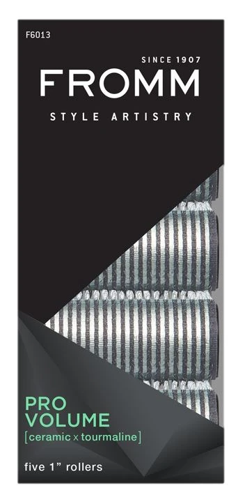 Fromm Pro Volume ceramic hair rollers roll easily into hair and stay in place without clips or clamps, then remove gently without pulling or tugging strands.