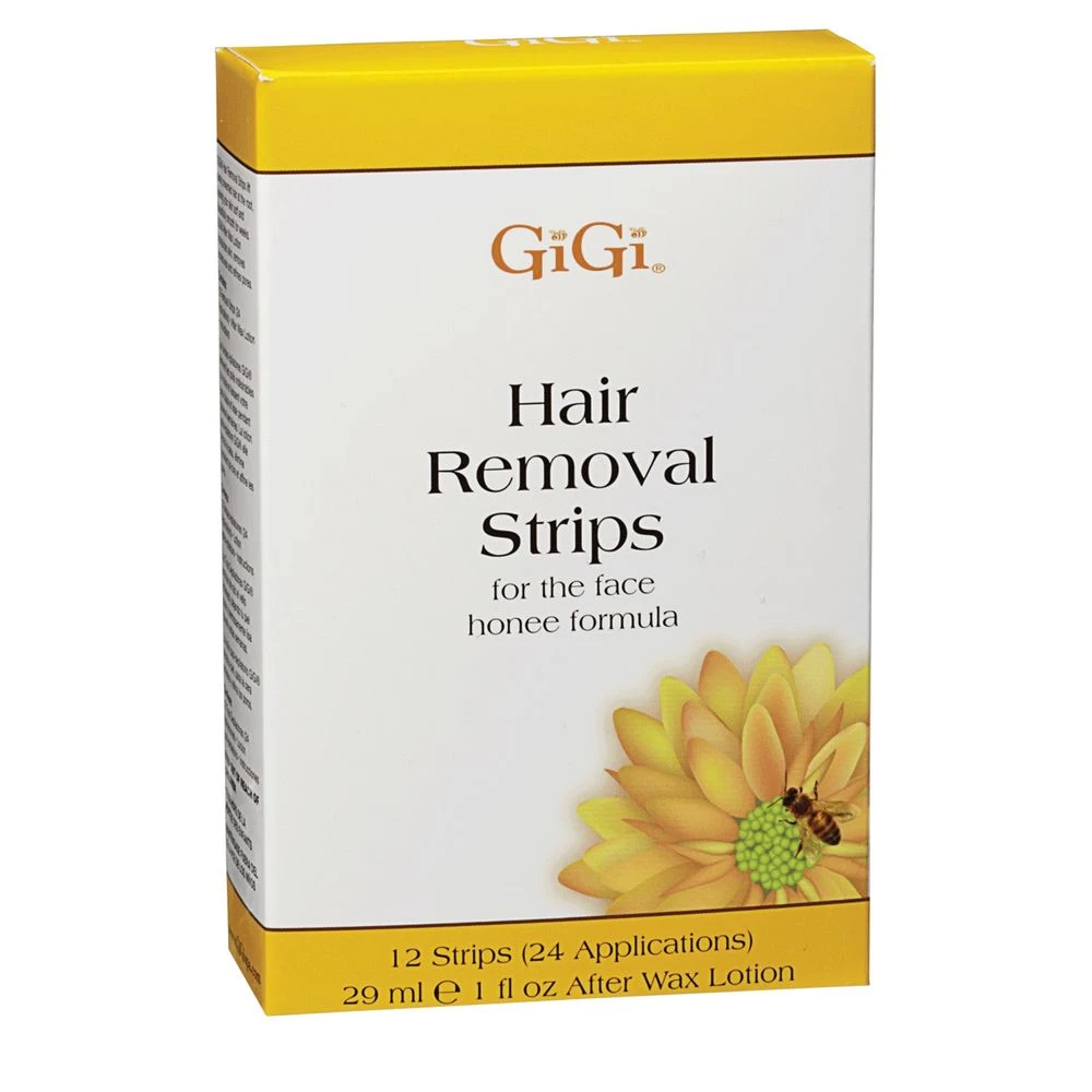 GiGi Hair Removal Strips for the Face are perfectly sized for the upper lip, eyebrow, chin and hairline. The pre-waxed strips, formulated with GiGi All Purpose Honee, lift away unwanted hair, leaving the skin soft and smooth for weeks.