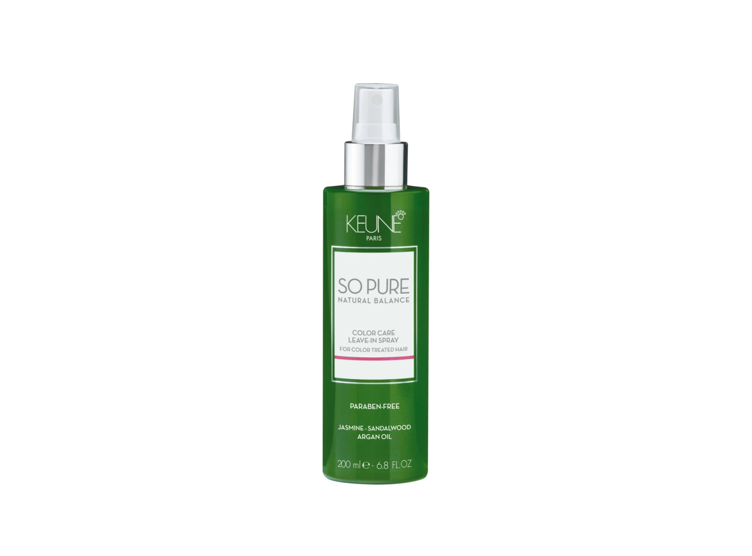 So Pure Color Care Leave-in Spray is the ideal multitasker for color-treated hair. While that beautifully colored hair is out and about doing its thing, this spray is moisturizing, strengthening, balancing, detangling – and protecting hair from those color-killing UV rays. So hair keeps on shining, and smells lovely, too.