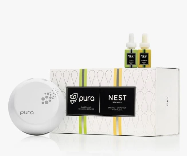 Introducing a smart new way to scent your home for the season. Now you can create any mood, in any room, from anywhere—all from your phone. Nest’s new Smart Home Fragrance Diffuser powered by Pura fills your home with your favorite NEST New York fragrances. Now available in a set featuring bestselling Grapefruit and Bamboo, the app-based device connects to your phone, allowing you to set your scent schedule, swap between scents, and adjust intensity from anywhere.