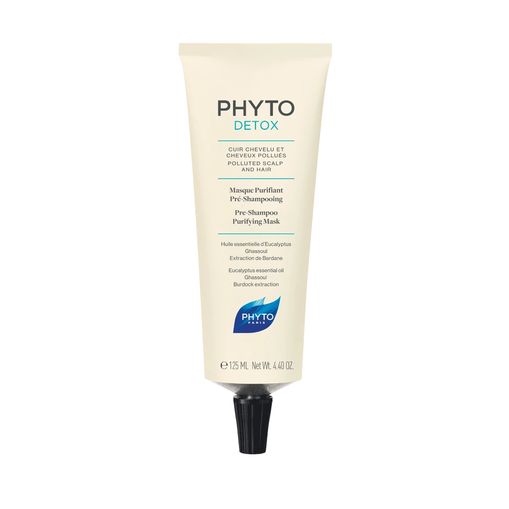 Phyto Pre-Shampoo Purifying Mask is a precious creamy and delectably rich desert clay in a rosy beige shade with a refreshing, natural Eucalyptus scent. Intensely cleanses the scalp, with the easy and rapid to apply nozzle tube applicator. The combination of Ghassoul, Eucalyptus essential oil, and Burdock extraction absorbs dust, pollution, and residue from hair styling products. Perfectly cleansed, the scalp is able to “breathe again” and the hair regains body and volume from the roots.
