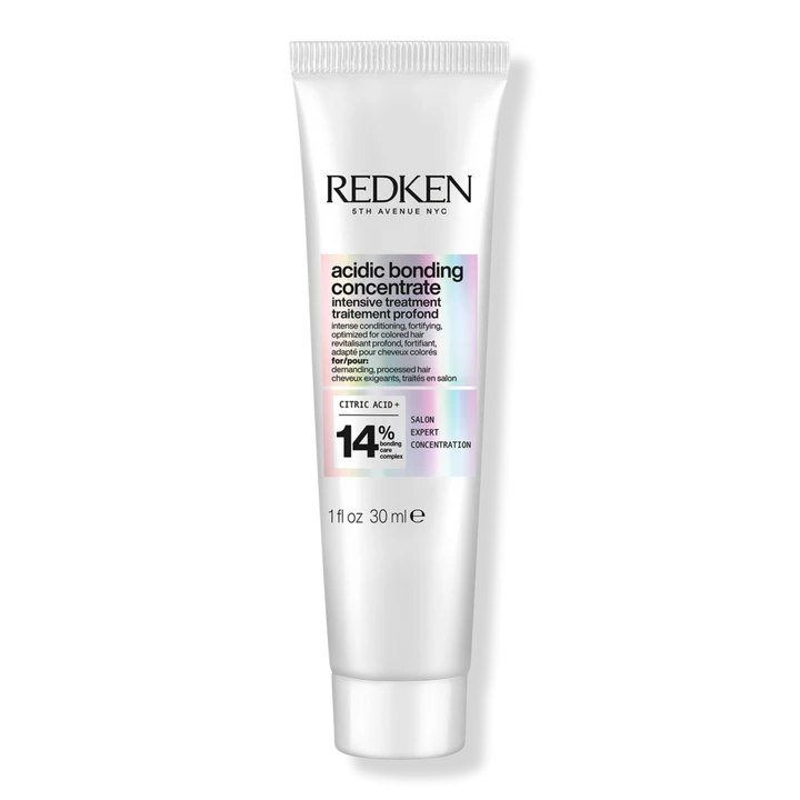 Redken Acidic Bonding Concentrate Intensive Treatment Mask for Damaged Hair helps strengthen even the most damaged hair in 5 minutes. Redken Bonding Care Complex strengthens hair from the inside & out with continued use of Acidic Bonding Concentrate Intensive Treatment, Shampoo and Conditioner.