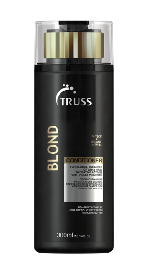 Truss Blond Conditioner recommended for blonde, bleached and gray hair. Promotes color protection (neutralizes orange tones) and hydration. Restores natural elasticity and protects.